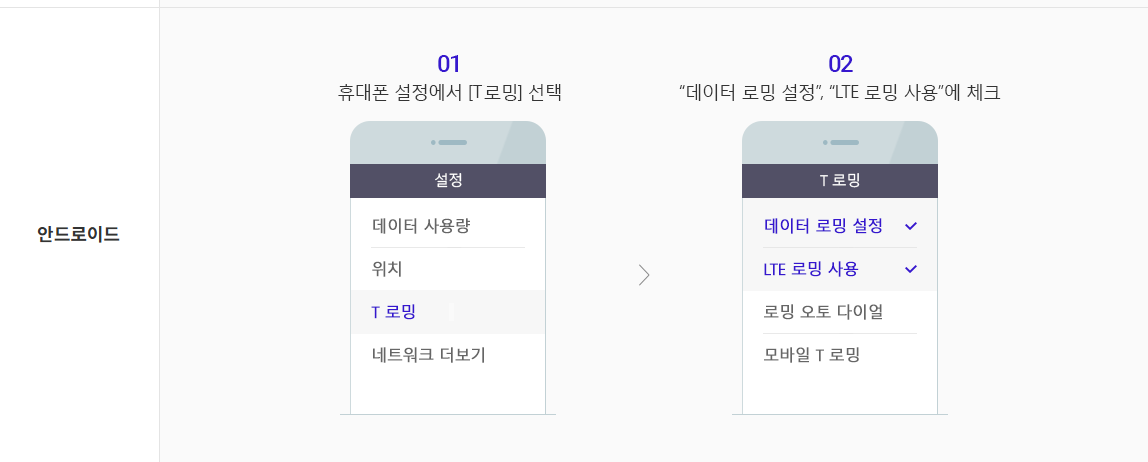 1) 온라인 가입 (T로밍 웹사이트 및 앱 이용)