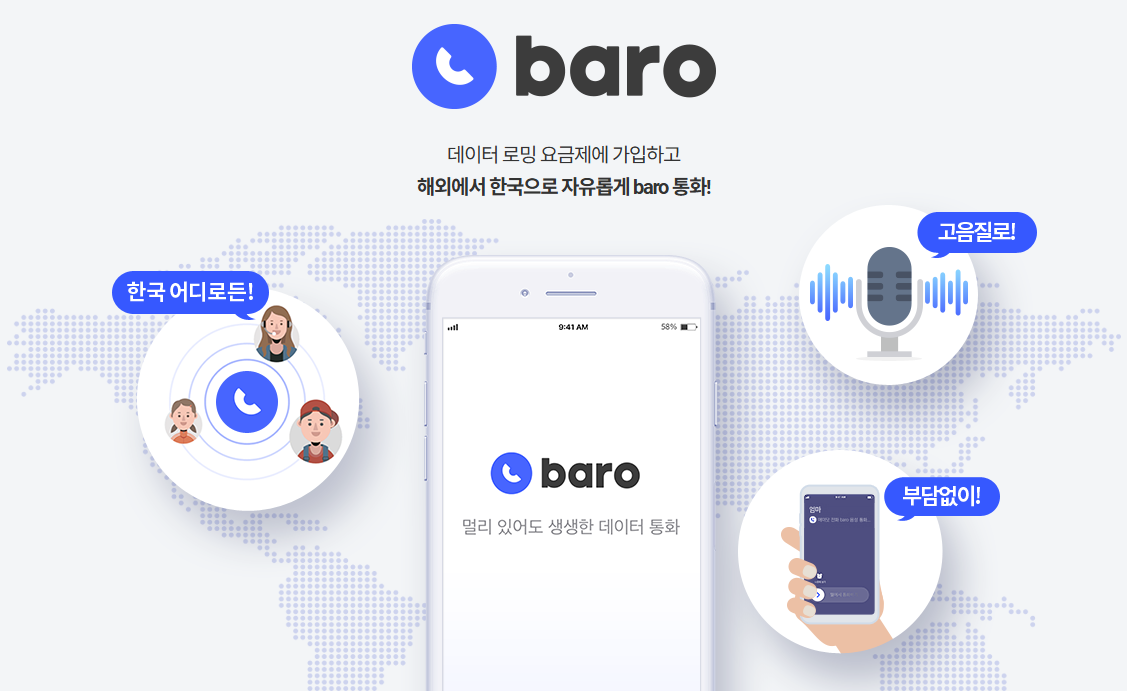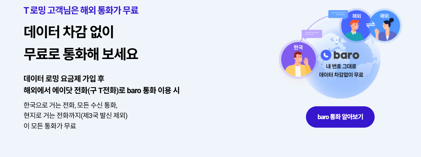 - baro 요금제는 아시아, 유럽, 미주 등 170개국 이상에서 사용 가능